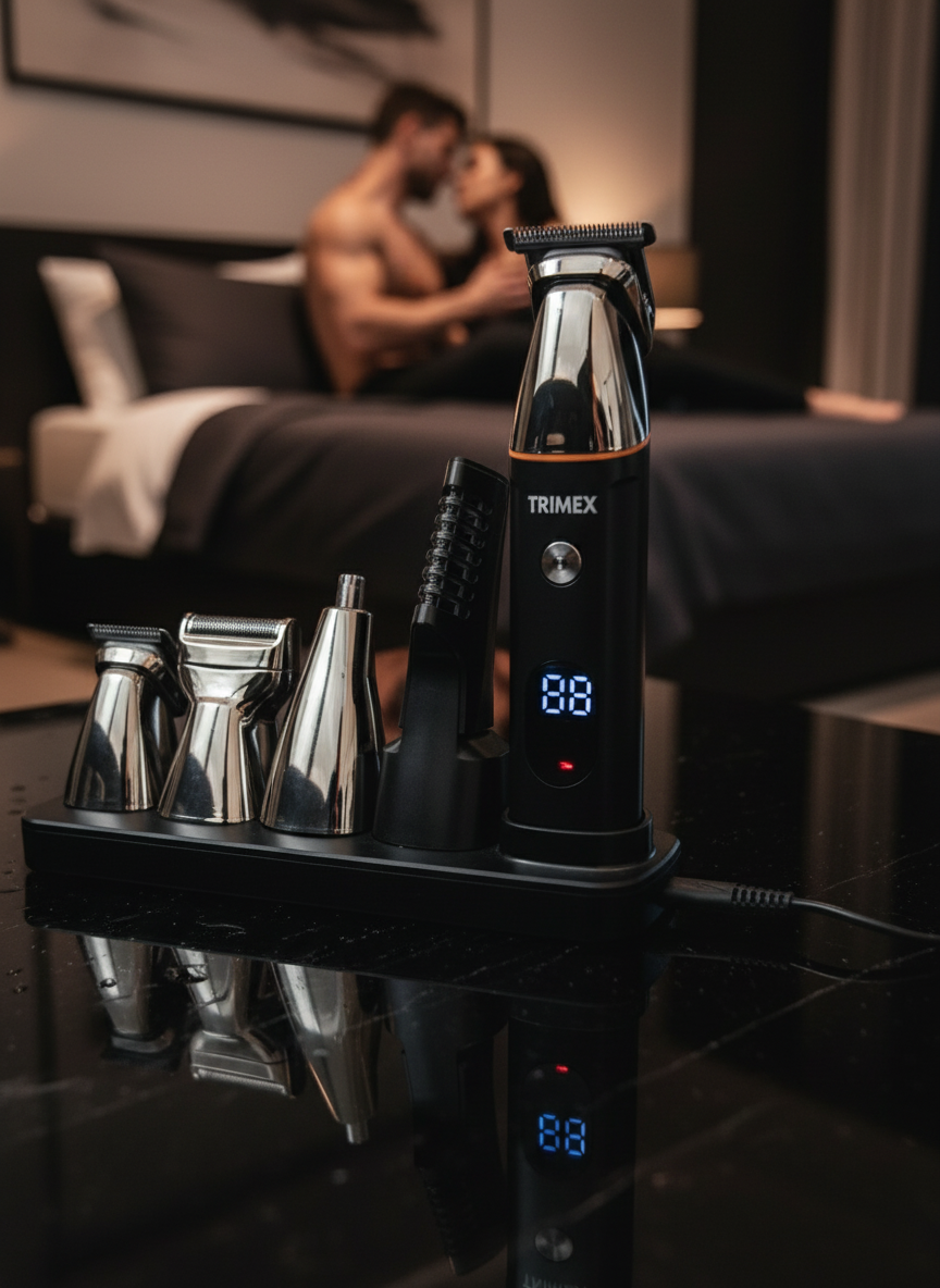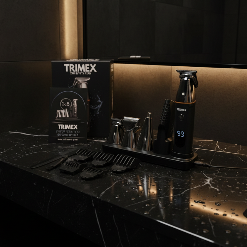 TRIMEX מחליפה 5 מכשירים שונים: תספורת, זקן, גילוח גוף, קווי פנים – וגם גוזם לאוזניים ולאף. כל מה שצריך – בעיצוב אחד מרשים, מדויק ועמיד למים. בלי בלגן.